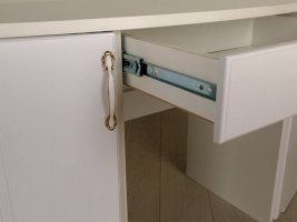 Модульная серия «Виктория» выполнена в стиле «Классика». Особенность серии - фасады МДФ с фрезеровкой, петли с доводчиком на всех фасадах, шариковые направляющие, ручки металлические с белой вставкой, покрытие золото.