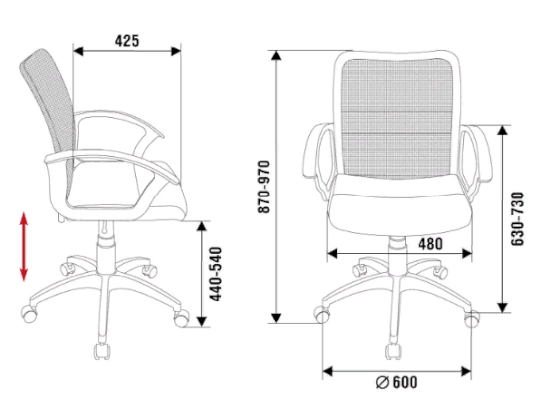 Высота сидения: 440-540