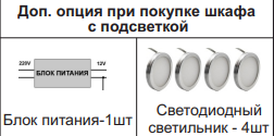 Шкаф комбинированный, Полка, Шкаф для посуды могут дополнительно комплектоваться подсветкой.