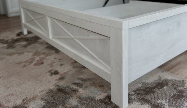 Кровать Лорена – это идеальное решение для интерьера квартиры или загородного дома в стиле неоклассика или прованс. Светлый цвет модного декора «Бетон пайн» с фактурой и рисунком натурального дерева добавят интерьеру уюта и умиротворенности. Высокое изголовье и изножье украшают декоративные крестообразные накладки и фигурный карниз. Надежный подъемный механизм позволит с легкостью убирать постельные принадлежности в объемный бельевой короб.