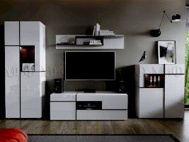Глянцевая белоснежная гостиная делает комнату просторнее и светлее. Яркое тому подтверждение гостиная «Мадера». Любой предмет мебели в такой гостиной можно использовать как самостоятельную единицу, так как она подойдет к любому интерьеру. С помощью гостиной «Мадера» можно создать свой стиль в обстановке квартиры.