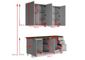Высота нижних модулей (с учетом столешницы): 860 мм