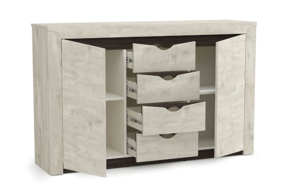 Тумба – отличное решение для комбинированного размещения ваших вещей, ведь она представляет собой комод и пенал одновременно. Центральные выдвижные ящики имеют оптимальную высоту и ширину – они вместительны и удобны.