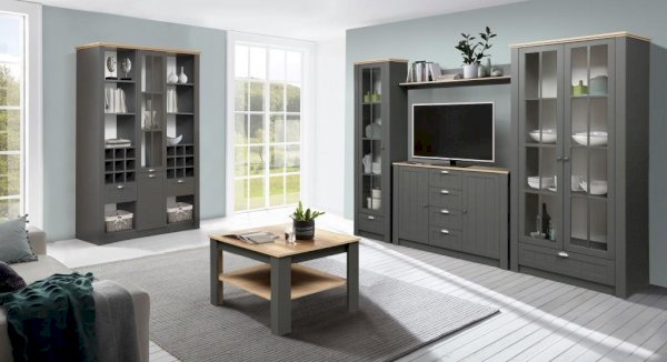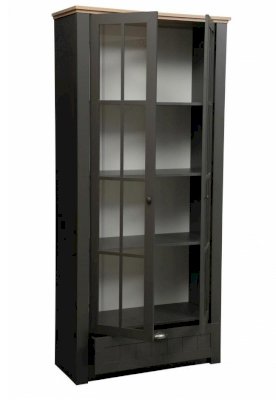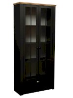 Комбинированный шкаф – любимец женщин, потому что, в зависимости от поставленной задачи, он может превратиться в буфет, в витрину, библиотеку – в общем, абсолютно универсален! Четыре полки за стеклянными дверцами и одна закрытая выдвижная позволяют поместить внутрь все задуманное. Это может быть посуда, книги, сувениры – все, что хочется продемонстрировать, ведь все за стеклом! И лишь в выдвижном ящике можно спрятать то, что не предназначено для всеобщего обозрения. Каждая из полок выполнена из ЛДСП и выдерживает вес до 5 кг. Фасадная профильная вставка и контрастный карниз наверху украшают модуль, делают его интересным и неординарным. Рамочная конструкция придает не только красоту и законченность внешнему виду, но также несет практический функционал. Она укрепляет изделие по периметру, делает его более прочным и удлиняет заявленный срок службы.