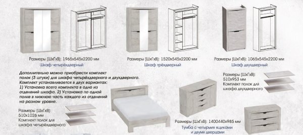 Соренто Шкаф 2дв+ комплект полок
