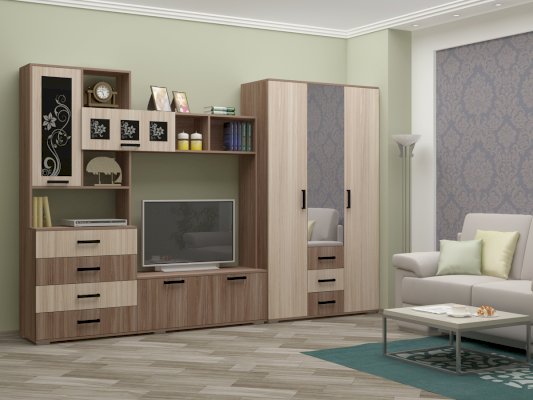 Эта модульная система отличается своей компактностью, легкостью, функциональностью. Стенка подойдет как в малогабаритную квартиру, так и в просторную гостиную.