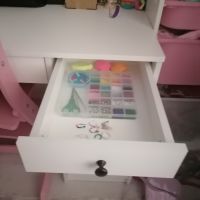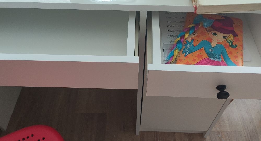 пришел стол хорошо упакованный, и что самое главное, без единого скола. Ребёнку очень понравился. Удобно что есть 2 выдвижные полочки и дверца с двумя полками. Сверху сразу постелила жидкое стекло, все таки ребенок сидит, а стол белый. Спасибо, покупкой довольна.