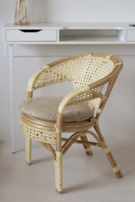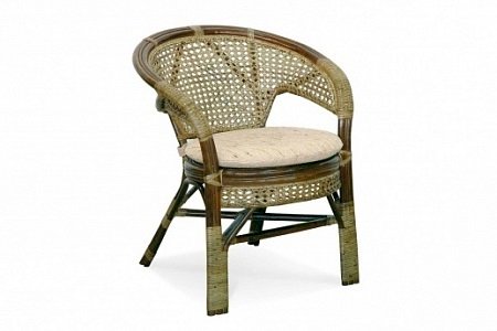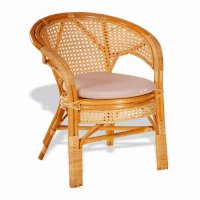 Кресло из натурального ротанга с подушкой и плетеной спинкой Пеланги.