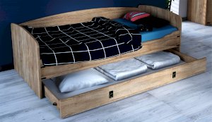 • Ящик для белья можно использовать как дополнительное спальное место. Легко выдвигается за счет множества упоров в виде роликов.