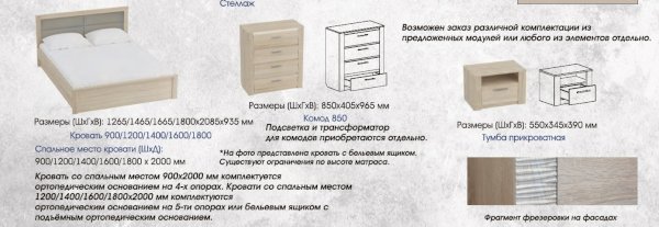 Размер спального места 90*200 / 120*200 / 140*200 / 160*200 / 180*200