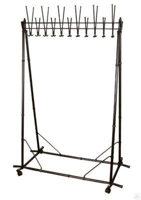 Групповая вешалка на 22 крючка. Вешалка выполнена из оцинкованной стали с полимерным покрытием. Крючки вешалки выполнены из трубы диаметром 10 мм. Вешалка поставляется в разобранном виде, в картонной таре. Эта модель вешалки может использоваться как фрагмент для обустройства гардеробных комнат.