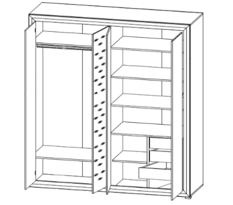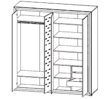 За 2 распашными дверями – расположена полка и стационарная штанга для одежды