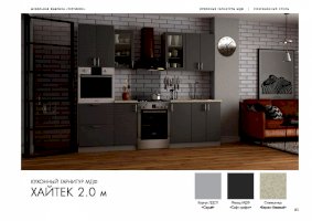 Кухня Хайтек изговаливается также в цветах серый/лайм глянец; серый/крем брюле глянец; серый/мокко глянец; серый/лайм глянец; серый/софт светлый. Модули в этих цветовых решениях вы сможете найти в нашем интернет-магазине.