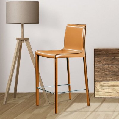 Главная особенность модели – плавный переход спинки в сиденье, образующий мягкий изгиб. Ножки стула, также обтянутые кожей, создают единый образ и являются визуальным продолжением сиденья.