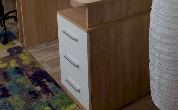 Стол письменный – удобное рабочее место для студента, школьника, отличное решение для кабинета с интерьером в скандинавском стиле. На широкой столешнице легко поместится монитор, клавиатура и документы, а в ящиках поместятся все письменные принадлежности. В столах системы Гарвард мягкие, удобные для опирающихся рук края, с кромкой в 2мм, а также, скруглённые углы столешницы. Корпус выполнен в теплом древесном цвете светлого дуба с приятной на ощупь фактурой, фасады - белые матовые. Нейтральные оттенки мебели позволяют легко вписаться уже в готовый интерьер.