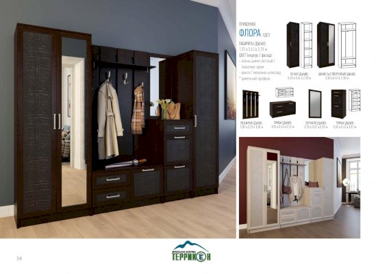 Шкаф 2-х створчатый с зеркалом Флора модуль №1 (Террикон)