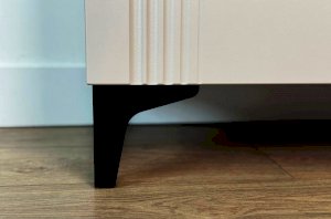 Комод изготовлен из качественных материалов: корпус выполнен из ЛДСП, что гарантирует прочность и долговечность, а фасад, выполненный из МДФ в плёнке ПВХ, не только выглядит эстетично, но и защищает комод от повреждений. Особое внимание заслуживает фрезеровка фасадов, которая придаёт изделию изысканный вид.