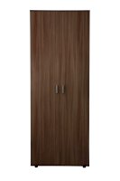 Шкаф двухдверный отличается простотой и лаконичностью оформления, внутри антресольная полка и штанга под одежду.
