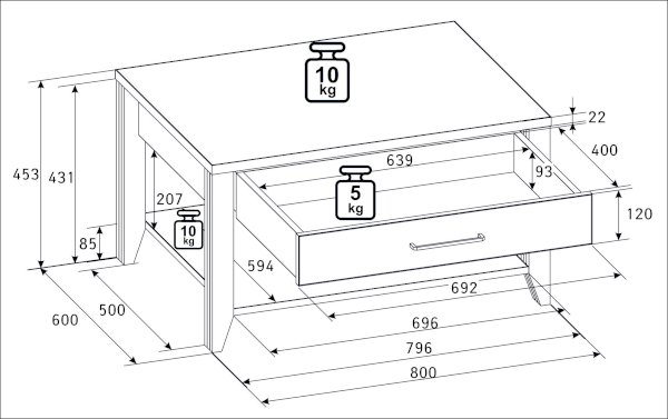 Максимальная нагрузка на столешницу: 10 кг