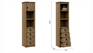 Пенал с открытыми и закрытыми полками служит для хранения учебников, тетрадей и других письменных принадлежностей. Декоративные накладки и профиль из МДФ по вертикальным краям закрывают острые края корпуса и придают шкафу более эффектный и надежной вид. Декоративные элементы на фасаде и металлические ручки MARINE бронзового цвета стилизованы под морскую тематику. Идеально компонуется со всеми модулями системы Валенсия.